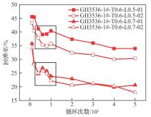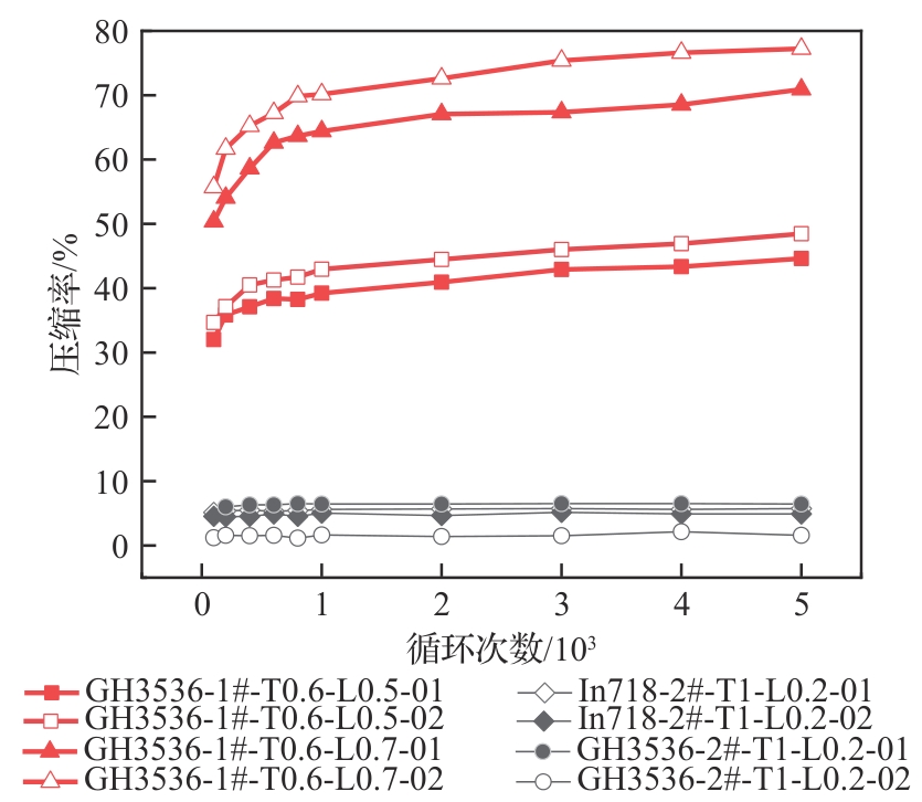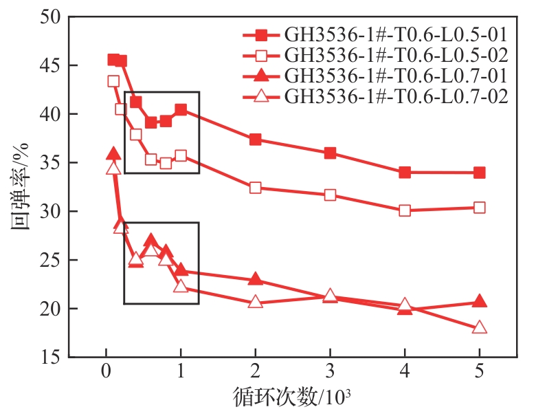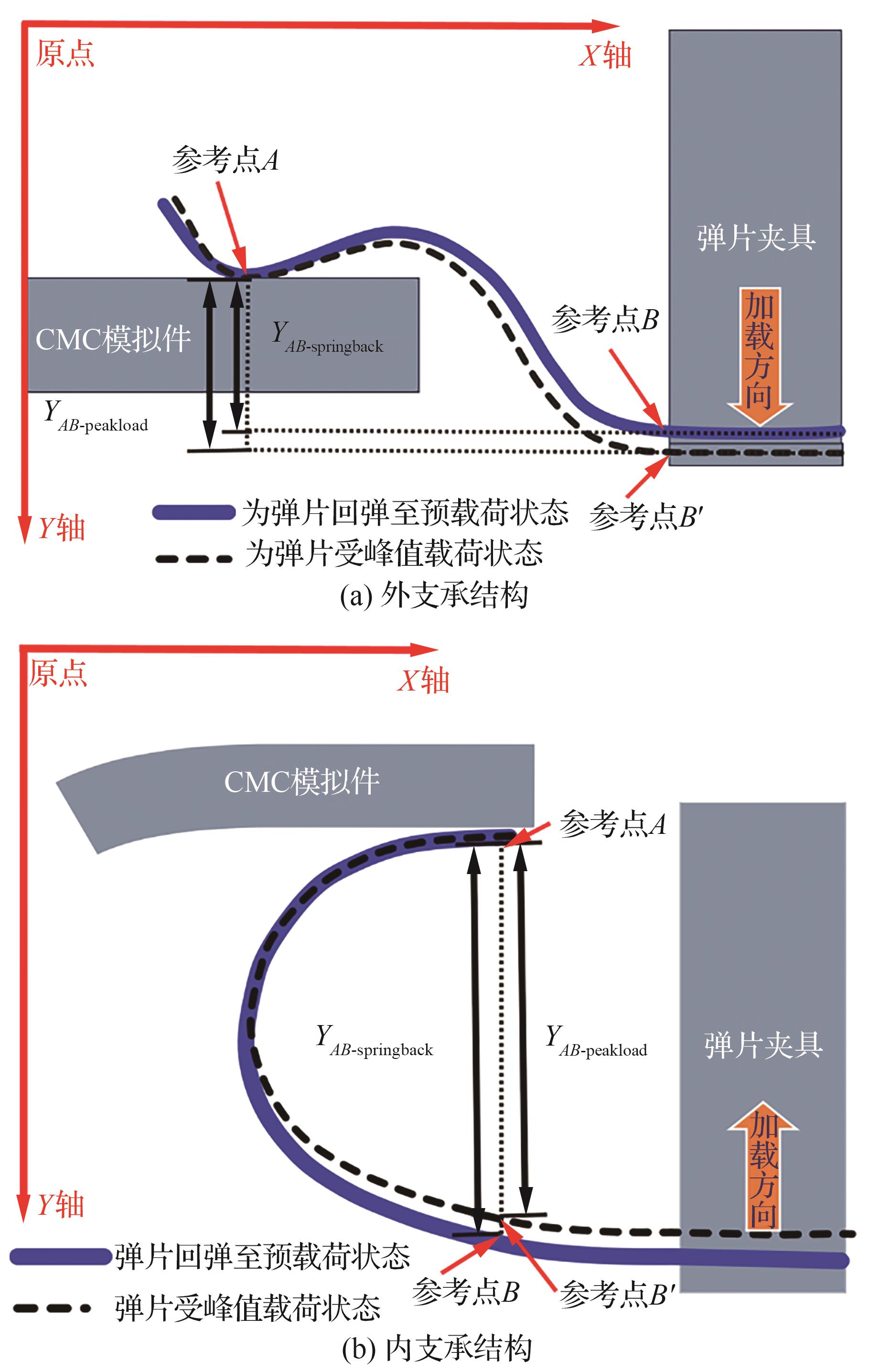 陶瓷基复合材料(CMC)以其耐高温、低密度、高比刚度、高比强度的特点,已成为航空航天领域重要的结构材料,并逐步应用于航空航天热结构部件,而CMC与金属零部件的连接结构设计与性能考核是CMC实现广泛应用的关键。为研究CMC-金属柔性支承结构的高温回弹性能,根据支承结构的典型特征设计了CMC-金属柔性支承结构试验模拟件,对其在高温条件下开展压缩疲劳试验,并采用数字图像相关(DIC)方法对支承结构的疲劳变形行为和金属支承弹片的回弹性能进行原位在线观测和量化分析。结果表明:内支承与外支承金属弹片的回弹率受结构循环硬化和非弹性变形累积的影响,循环硬化提高弹性变形比例进而提高回弹率,而非弹性变形的变速累积使弹片回弹率不断下降。疲劳载荷水平越高,支承结构变形幅度越大,非弹性变形在弹片高变形区域的累积越显著,支承结构从而表现出越低的回弹率。高温疲劳结束后,外支承结构弹片回弹率在35%以下,内支承结构弹片回弹率在40%~60%。