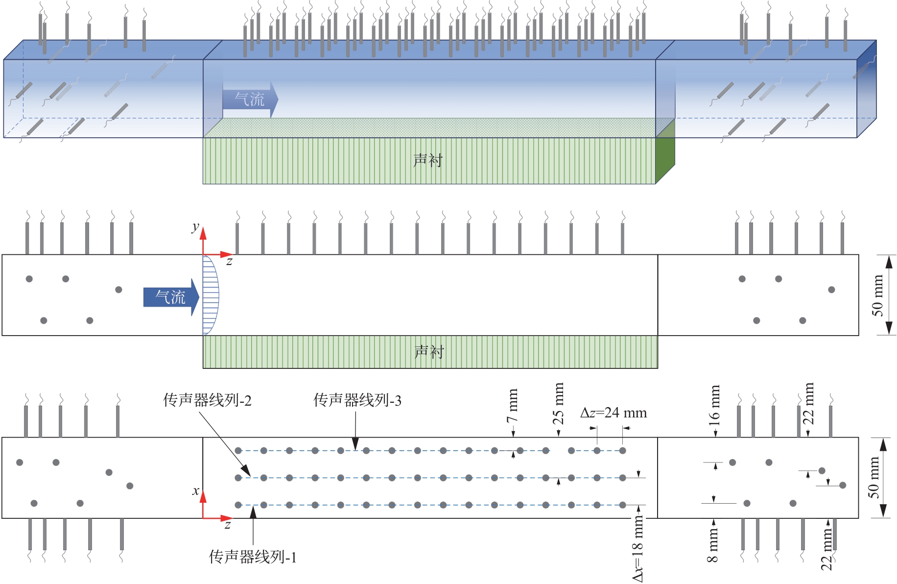 关键词: 声衬, 宽频噪声, 声阻抗, 三维直接提取法, 传声损失