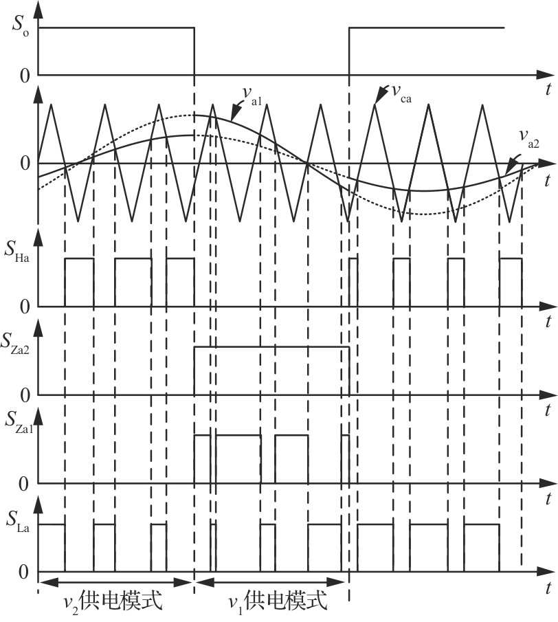 提出了面向机载低频脉冲负载供电的三相双输出整流器及其控制策略。针对大功率机载雷达等高峰值脉冲功率负载对飞机有限容量电源系统造成的影响,设计了能够同时提供2路独立受控直流输出的双输出整流器。整流器2个直流输出分别用作常规负载和低频脉冲负载的直流供电母线,解决了传统单直流母线供电架构下低频脉冲负载干扰常规负载稳定运行的问题。通过允许低频脉冲负载直流母线电压宽幅波动,有效减小了母线解耦电容的容量和体积质量。给出了双输出整流器的电路实现方式,分析了其工作原理,提出并详细研究了适应2路输出功率分配与调控需求的PWM调制策略及其控制方法。最后,通过实验验证了所提方法的可行性和有效性。