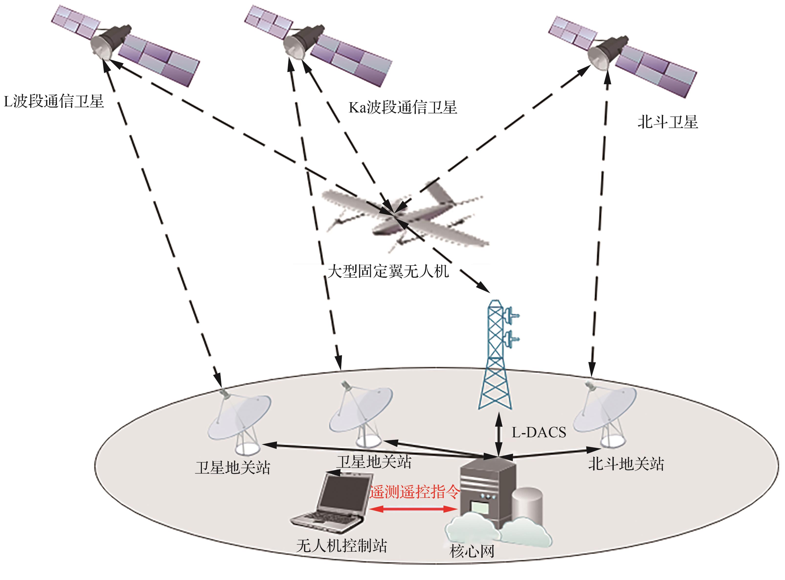 | 卫星通信 | C频段、Ku频段、 Ka频段 | 覆盖范围广 | 数据速率低,接收机重量大 | 有人机、管制空域中的大型无人机 |