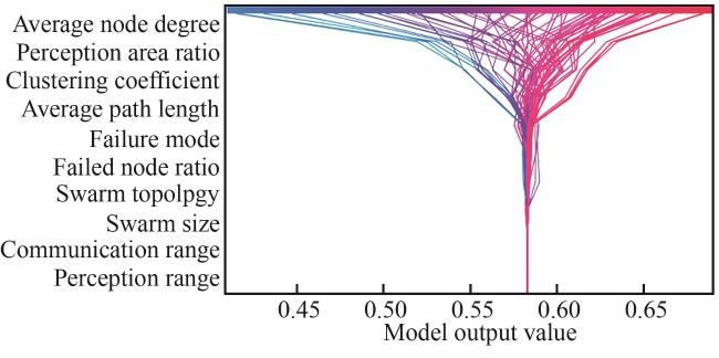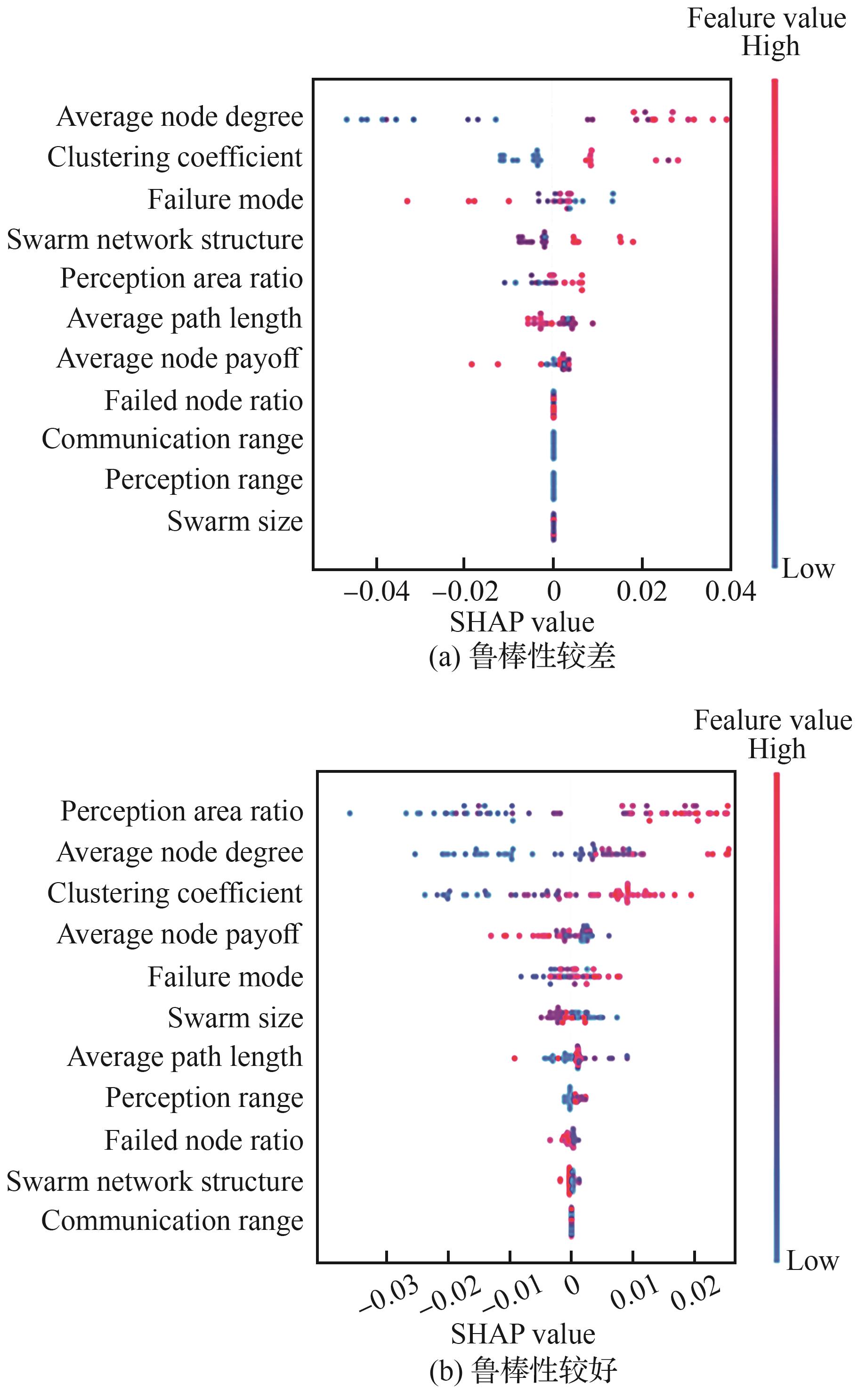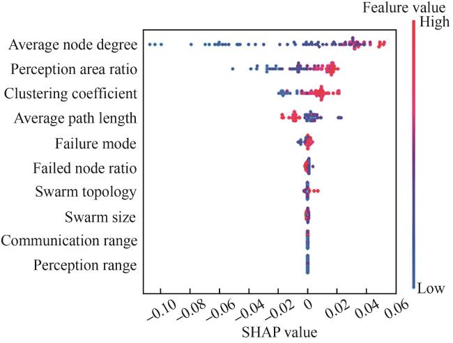 Unmanned swarms have widely penetrated and profoundly affected all fields of modern society. In the process of mis-sion execution, unmanned swarms may face many kinds of interference and damage, which will affect the normal operation of the swarm and the efficient completion of the mission. Evaluating of the robustness of swarm has im-portant theoretical and applied value to ensure the stability and efficiency of the swarm in the dynamic environment. In this paper, taking cooperative sensing of the UAV swarm as an example, we utilize the Hawk and Dove evolutionary game to model the cooperation process according to behavioral characteristics of swarm cooperation. We construct the robustness indicator set of UAV swarm from the three dimensions of swarm attributions, environmental attributions and task effects and present a quantitative metric of evaluating robustness. Then we analyze the robustness perfor-mance of the swarm under various perturbation factors. Finally, we propose an intelligent evaluation model eXGBoost based on the Shapley additive explanation (SHAP) and the eXtreme Gradient Boosting (XGBoost) model. The exper-imental results show that the robustness indicator set and the evaluation method proposed by this paper have good feasibility and effectiveness. In addition, the method increases the transparency of the evaluation model. It can pro-vide effective feedback for the design of unmanned swarms. the design of unmanned swarms.