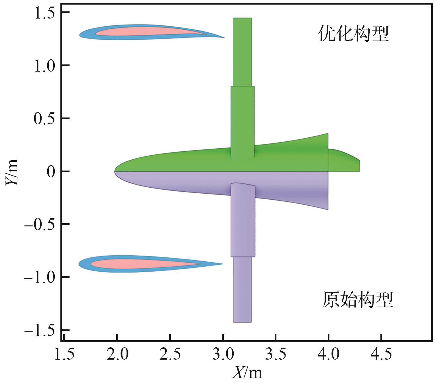 [16]。高压捕获翼布局通过在飞行器背面添加与气流方向平行的机翼,可有效捕获并利用飞行器上部压缩空气形成的高压区域,为飞行器提供额外升力,该布局在大型飞行器中的应用效果较好。然而,由于该布局对单体尺寸的严格要求以及复杂的气动布局设计思想,导致其单机研制成本相对较高,在集群化应用场景中的适应性和扩展性也相对受限。