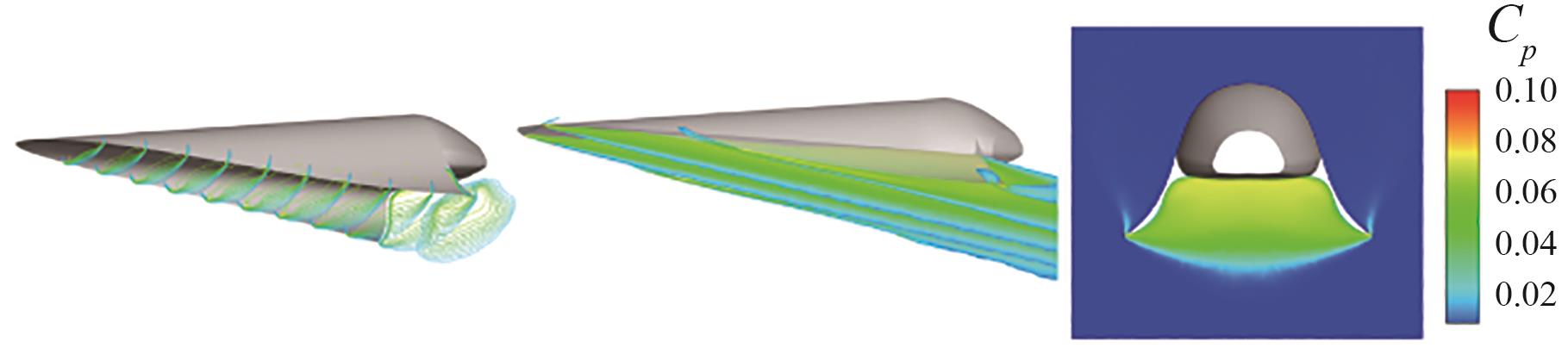 [11]。涡波一体化布局是基于传统乘波体设计方法的进一步发展,通过融合乘波体和后掠三角翼,实现了在亚、跨、超、高超声速各飞行状态下良好的气动性能