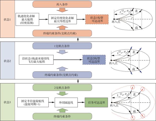 [31-33],在约束建模、计算效率及实时性等维度取得显著进展,推动了再入可达域计算技术向多约束、高动态场景的工程实用化发展。可达域求解方法的选择需根据问题的复杂度、计算资源限制和精度要求进行权衡。解析法适用于快速初步评估,数值优化方法如hp-RPM(hp-adaptive Radau Pseudospectral Method)适用于高精度复杂场景,而智能优化方法则适合多目标优化和全局搜索任务。