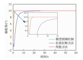 5.3 鲁棒分析为了进一步验证无人机编队系统在偏航角、俯仰角以及相对距离误差的动态响应和追踪效果,本文以相同的初始条件采用模型预测控制(MPC)方法、拉普拉斯方法以及所提出的方法进行模拟仿真。其仿真结果,如图 12~图 15所示。