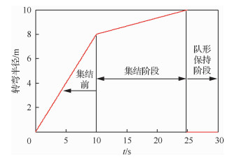 | 图 5 无人机转弯半径曲线图 Fig. 5 Curve of turning radius of UAV formation |