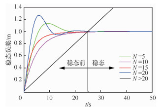| 图 7 无人机编队规模与稳态关系图 Fig. 7 UAV formation number and steady-state relationship curves |