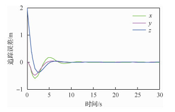| $ \left\{ {\begin{array}{*{20}{l}} {{\mathit{\boldsymbol{e}}_x} = - \left( {\mathit{\boldsymbol{L}} + \mathit{\boldsymbol{K}}} \right)\left( {\mathit{\boldsymbol{x}} - {x_{\rm{d}}}{\mathit{\boldsymbol{I}}_i}} \right)}\\ {{\mathit{\boldsymbol{e}}_y} = - \left( {\mathit{\boldsymbol{L}} + \mathit{\boldsymbol{K}}} \right)\left( {\mathit{\boldsymbol{y}} - {y_{\rm{d}}}{\mathit{\boldsymbol{I}}_i}} \right)}\\ {{\mathit{\boldsymbol{e}}_z} = - \left( {\mathit{\boldsymbol{L}} + \mathit{\boldsymbol{K}}} \right)\left( {\mathit{\boldsymbol{z}} - {z_{\rm{d}}}{\mathit{\boldsymbol{I}}_i}} \right)} \end{array}} \right. $ | (6) |