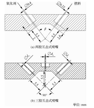 | 图 2 互击式喷嘴示意图 Fig. 2 Sketch of impinging injector |