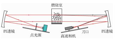 | 图 3 纹影光路示意图 Fig. 3 Sketch of optical setup of schlieren |
