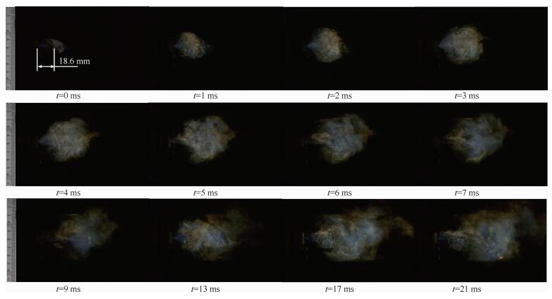 图 6 凝胶MMH/NTO推进剂着火过程火焰自然辐射发光图像( |