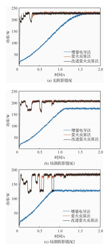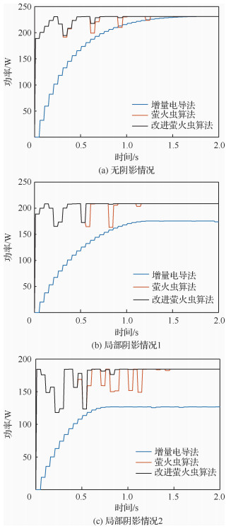2) 基于改进萤火虫的算法MPPT方法在不同光照情况下均能实现全局最大功率点的准确跟踪,且功率波动小。