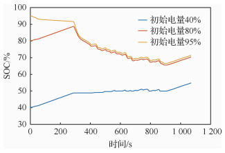 | 图 17 不同初始电量情况SOC变化曲线 Fig. 17 SOC curves of different initial power conditions |