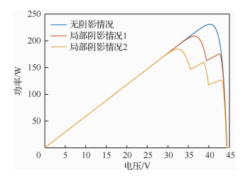 | 图 6 局部阴影模型下太阳能电池阵列P-V特性曲线 Fig. 6 P-V characteristic curves of solar cell array under partial shadow model |