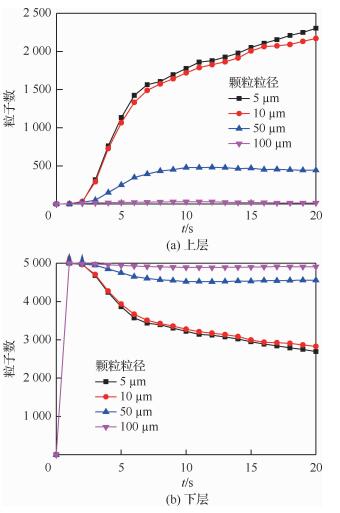 | 图 14 H=0.67R时不同粒径沙尘颗粒数量分布 Fig. 14 Quantity distribution of dust particles withdifferent sizes at H=0.67R |