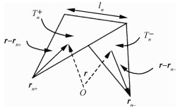 RWG基函数定义在一对相邻三角形面元Tn+和Tn-的公共边上(如图 1所示[21])。第n条边所对应的基函数为