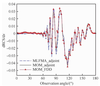 4 结论本文提出了一种基于麦克斯韦积分方程离散伴随方程的RCS梯度计算方法,实现了RCS梯度的高效、高精度求解,为基于梯度的电大尺寸目标高精度气动/隐身一体化优化提供了基础。