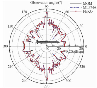 | 图 8 导弹单站RCS结果(水平极化) Fig. 8 RCS results of missile (horizontal polarization) |