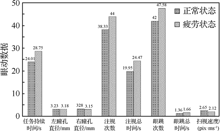| 图 3 不同工作状态下实验人员的眼动数据均值 Fig. 3 Eye movement data mean under different working conditions |
