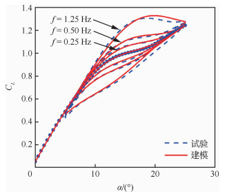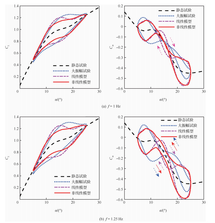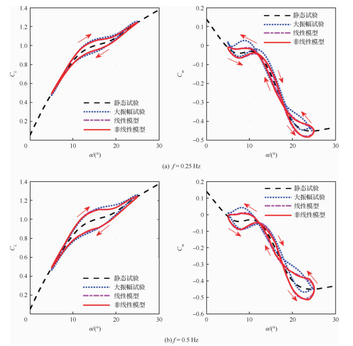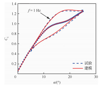 | 图 7 非定常气动力建模与大振幅试验结果对比 Fig. 7 Comparison results of unsteady aerodynamic model and large amplitude test |