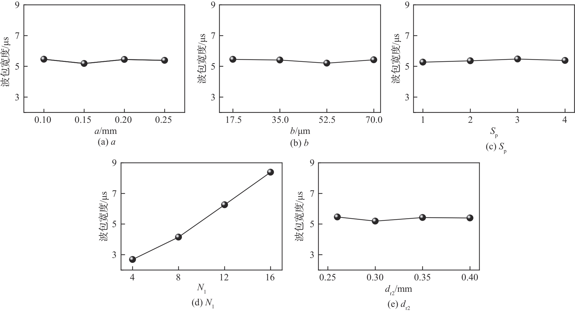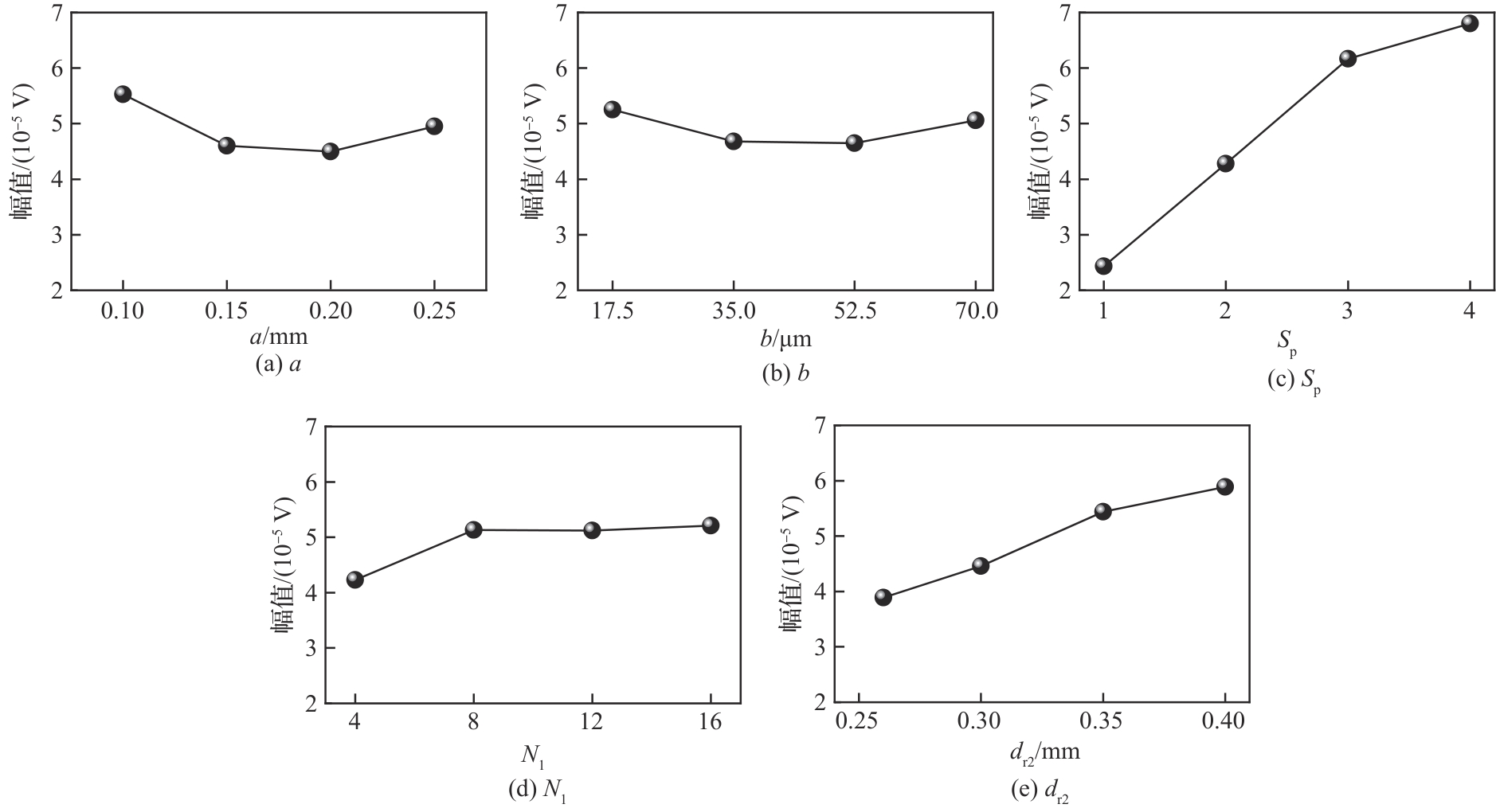 | 序号 | a/mm | b/μm | Sp | N1 | dr2/mm | RW幅值/(10-5 V) | RW波包宽度/μs |