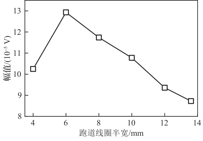 | 曲折线圈导线宽度a/mm | 0.10~0.25 | 跑道线圈-磁轭距离hl/mm | 0.05 |