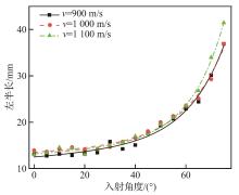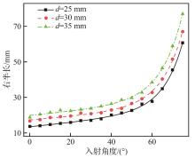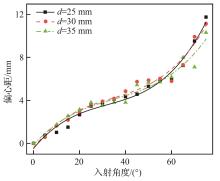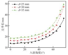 入射角度/ (°) | 偏心距/ mm | 宽度/mm | 左半长/ mm | 右半长/ mm |