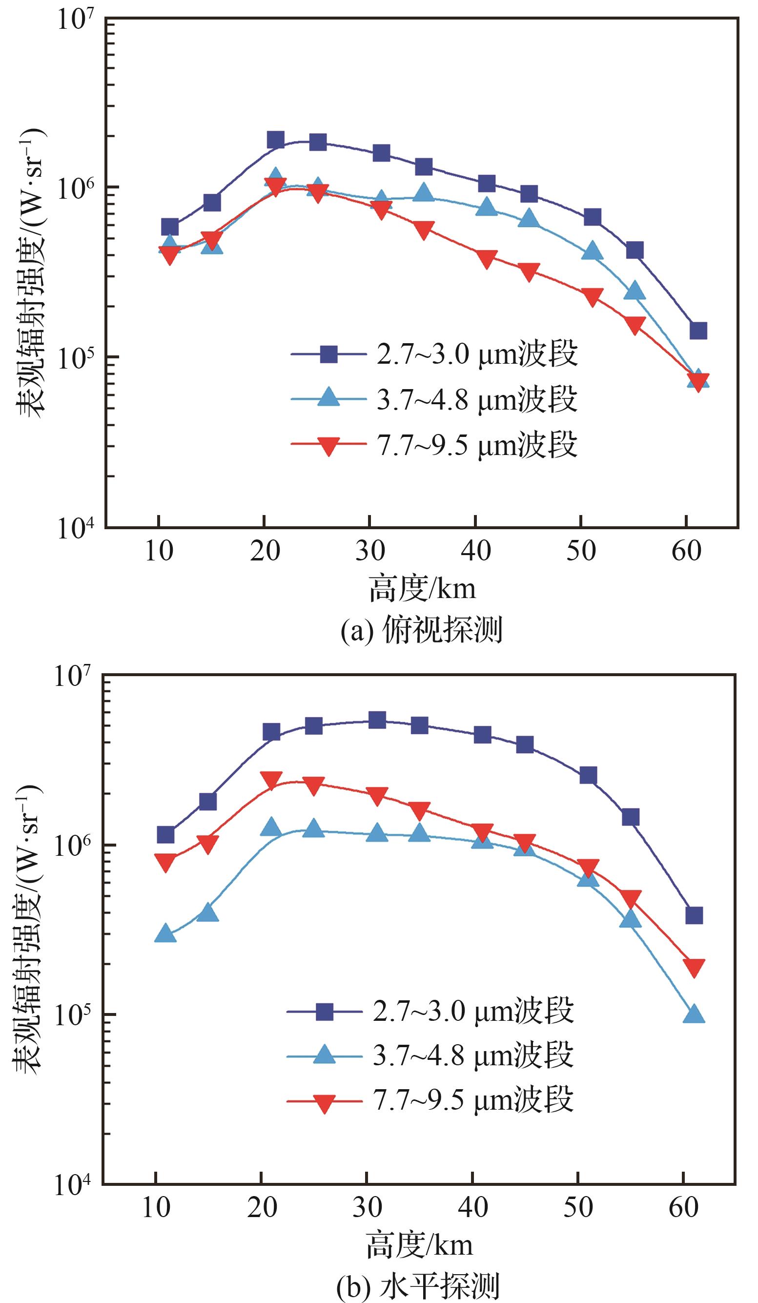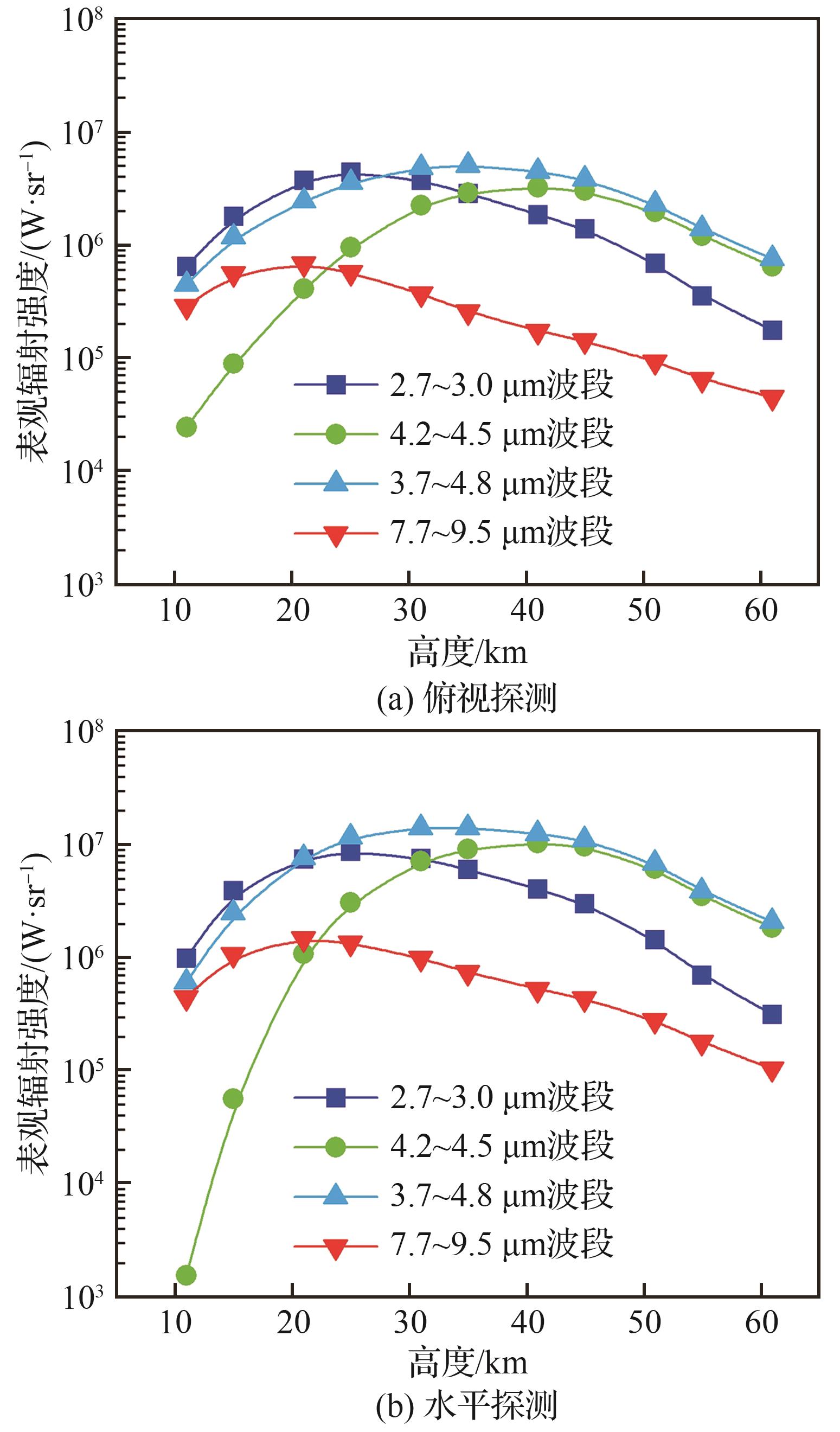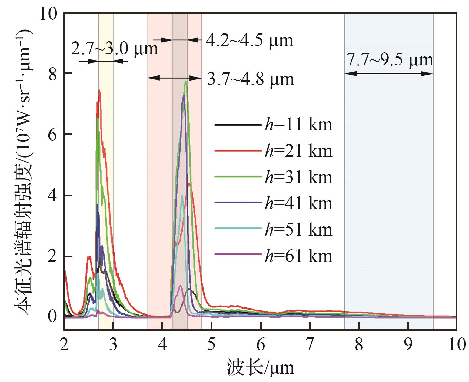 h/ km | 表观辐射强度/(W·sr-1) | |||