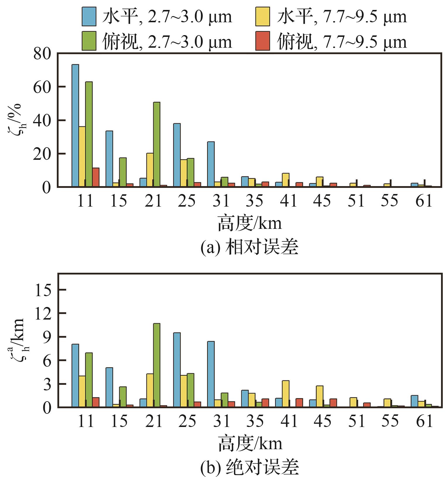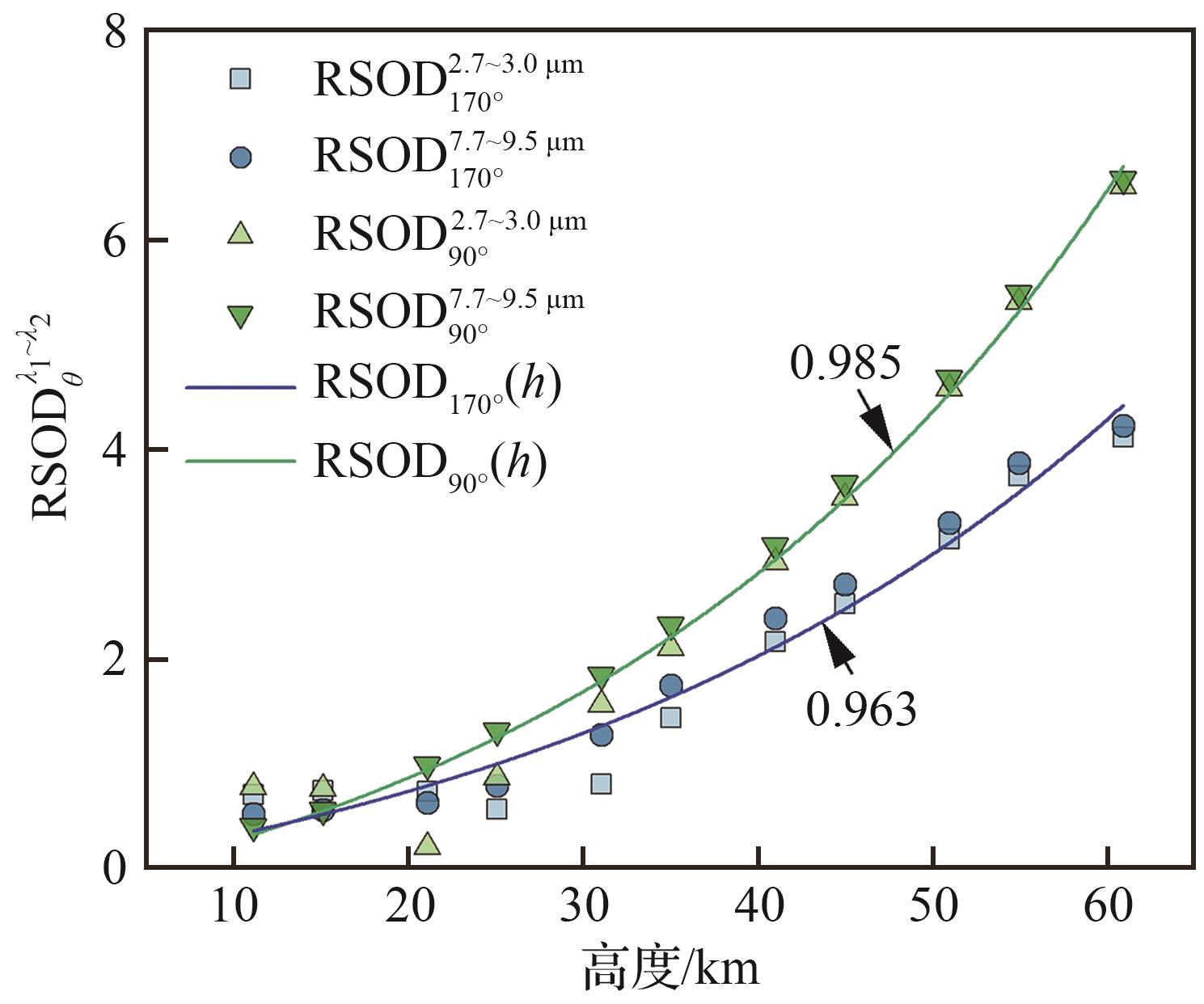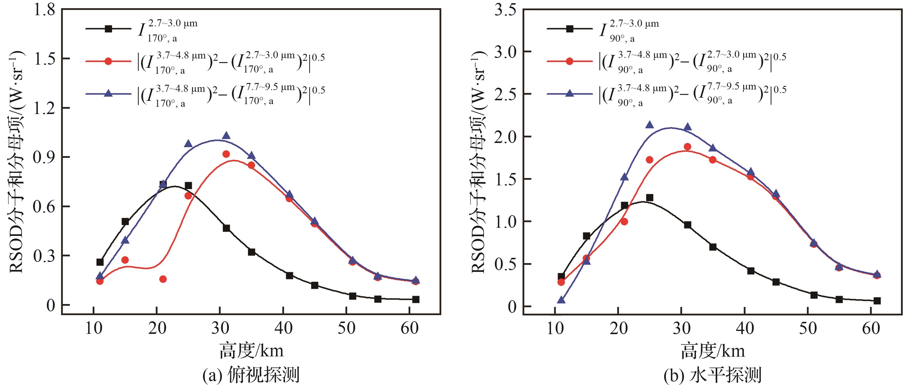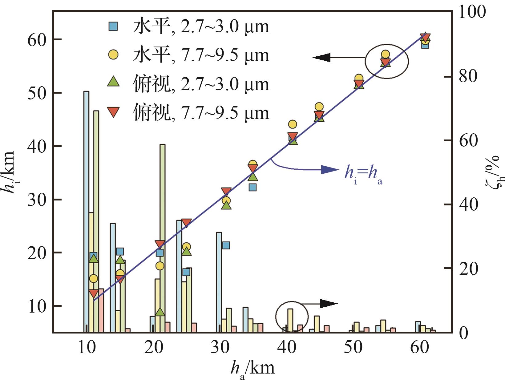 h/ km | 表观辐射强度/(W·sr-1) | |||