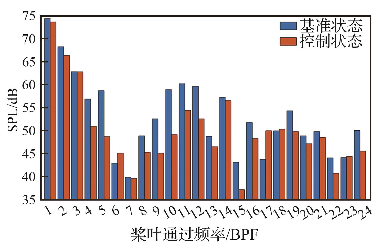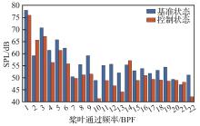 | 传声器 | 噪声频率 成分/BPF | 控制前声 压级/dB | 控制后声 压级/dB | 噪声降低/ dB |