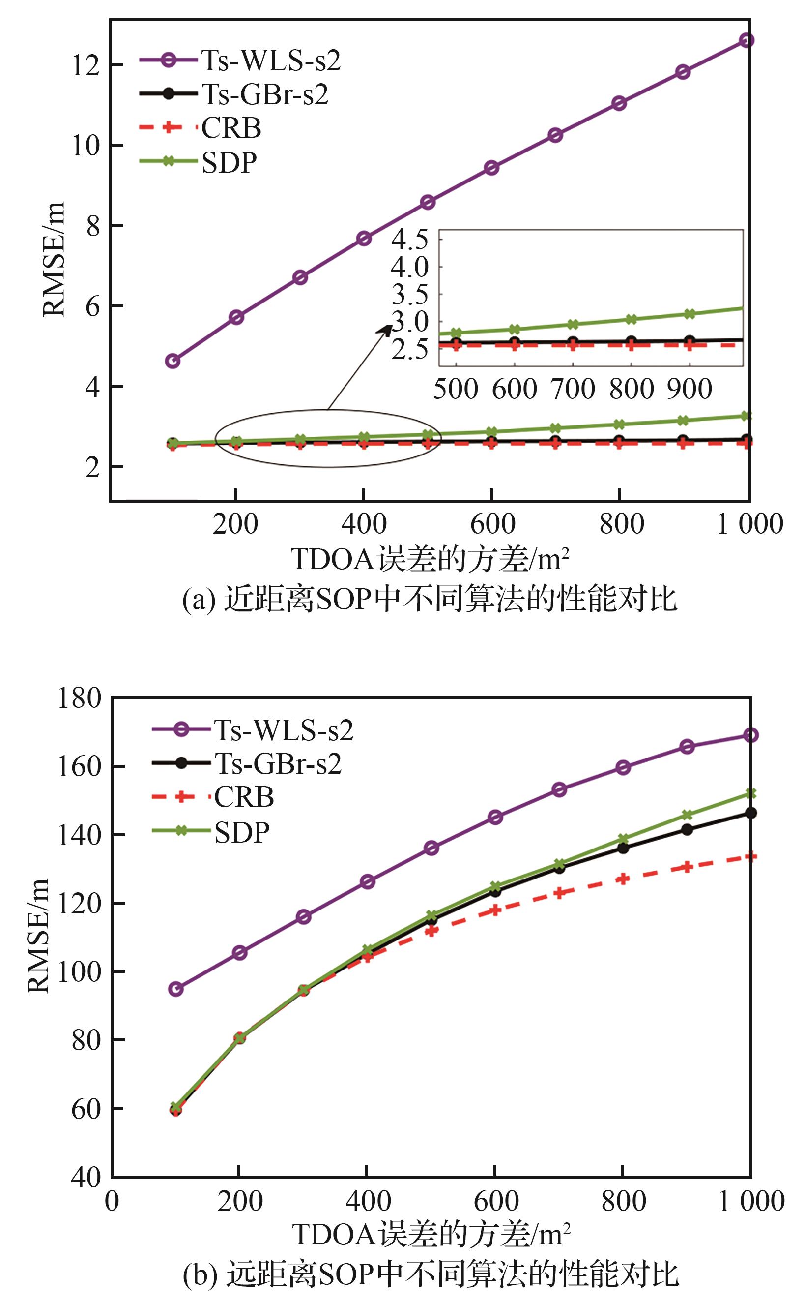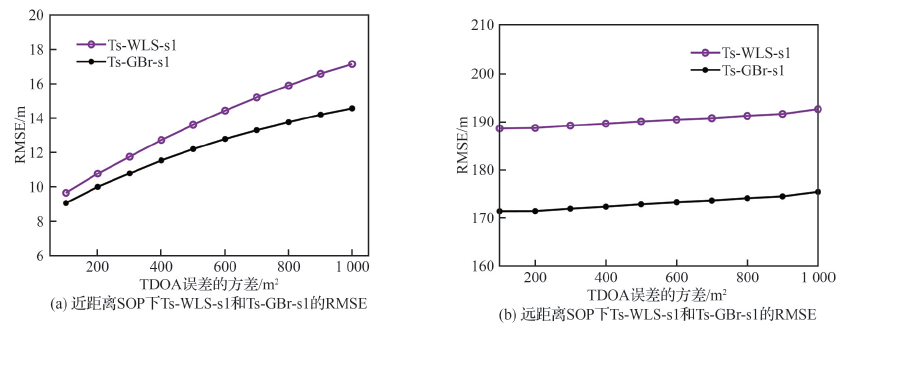 Location performance of Ts-WLS and Ts-GBr for far-rang SOP