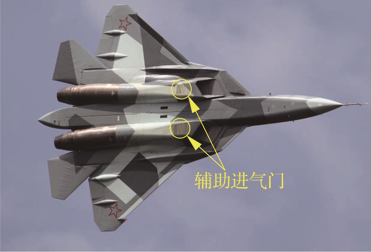 苏-57飞机进气道下方打开的辅助进气门